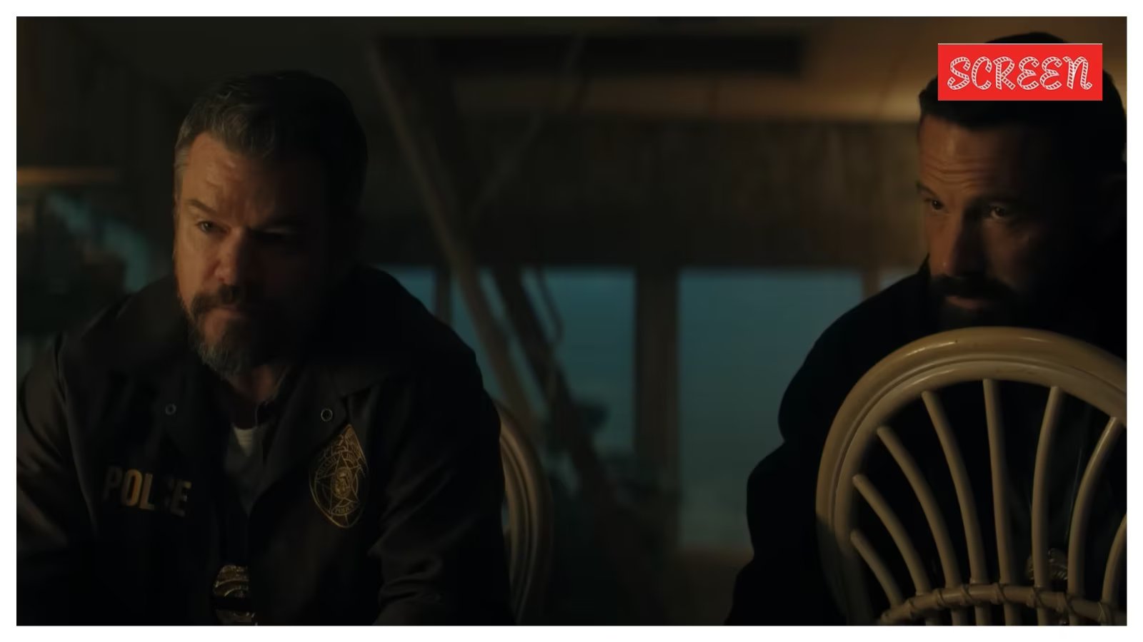 Once they realize the size of the seizure, their expressions suggest they may not true to their jobs anymore and shift their loyalties. They even turn on each other, admitting they can’t trust each other anymore, even shoving each other. To make matters worse, they get an anonymous call warning them to leave the house within 30 minutes because “no one needs to die tonight.” “Trust has a price,” screams the teaser, as the owner of the house asks Affleck and Damon what the tattoo “AWTGG” on their fingers stands for. “Are We The Good Guys?” replies Damon, as Ben looks at him intently.